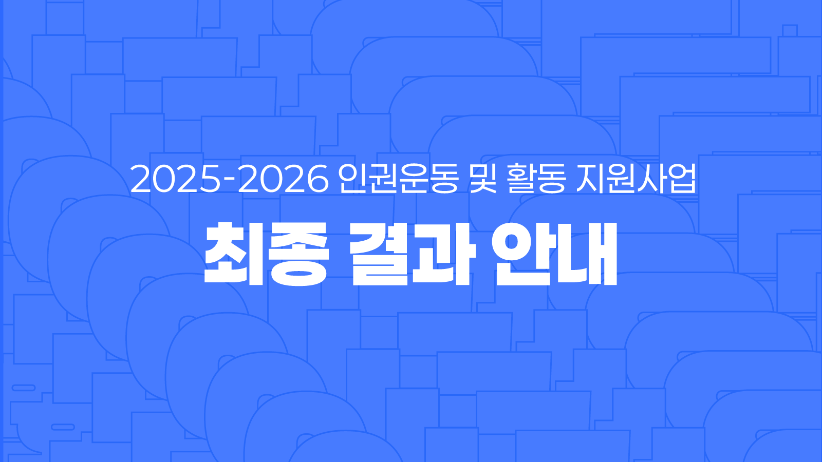 ‘2025-2026 인권운동 및 활동 지원사업’에 관심을 가지고 지원해 주신 모든 분들께 진심으로 감사드립니다. 젠더 정의 실현을 위해 각자의 자리에서 꾸준히 애쓰고 계신 단체 ...
